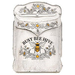 Busy Bee Hive Distressed Metal Post Box is a vintage-style metal mailbox. Box is painted white and it has been distressed for an aged look that complements a rustic home. Design is embossed with a honeybee and flowers and it features a honeycomb pattern to complete the bee theme. Mailbox includes a hinged lid for mail and stationery and it has two pre-drilled keyholes for hanging. Measures 14" high by 10" wide.