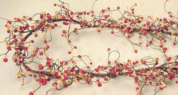 Bring the warm colors of autumn into your home with this beautiful bittersweet fall garland. Measuring approximately 4 feet long, it features a vibrant blend of orange fabric leaves and red foam berries. This garland is perfect for adding a festive touch to your mantel, banister, or doorway.