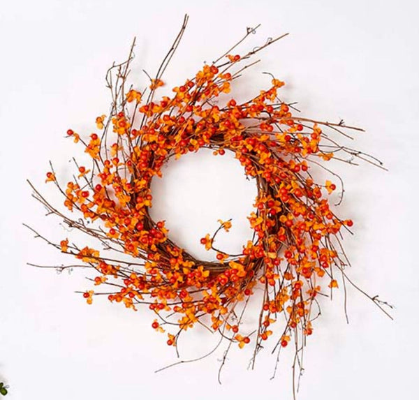 Unleash your inner decorator and transform your home with this vibrant fall wreath! Imagine a burst of fiery red berries and sunny yellow flowers greeting your guests. This eye-catching wreath, crafted on a natural twig base, instantly elevates your front door, mantel, or any space craving a touch of autumn magic.