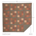 Inspired from a well-traveled crossing where fields of flowers meet old forests, the Crosswoods Queen Quilt lends a cozy sophistication to your bedroom. Our 90Wx90L quilt features green, red, and blue patchwork that mingles pleasantly with neutral tan and brown hues. Plaid, micro-check, and delicate floral patterns combine to capture a unique style of vintage beauty in your primitive, cottage, or traditional French country home. The floral print on the reverse side of this all-cotton quilt offers another way to decorate your bed.