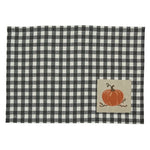 Accentuate your tabletop decor with our charming Autumn Checkerboard Placemat Set. This black and white checkerboard placemat set with a pumpkin applique will effortlessly serve as a neutral. It is trendy and classic. Add accessories in a large array of hues to make this chic and simple set uniquely yours.